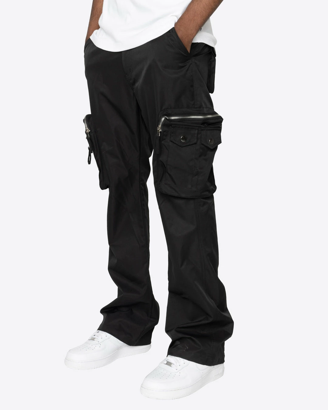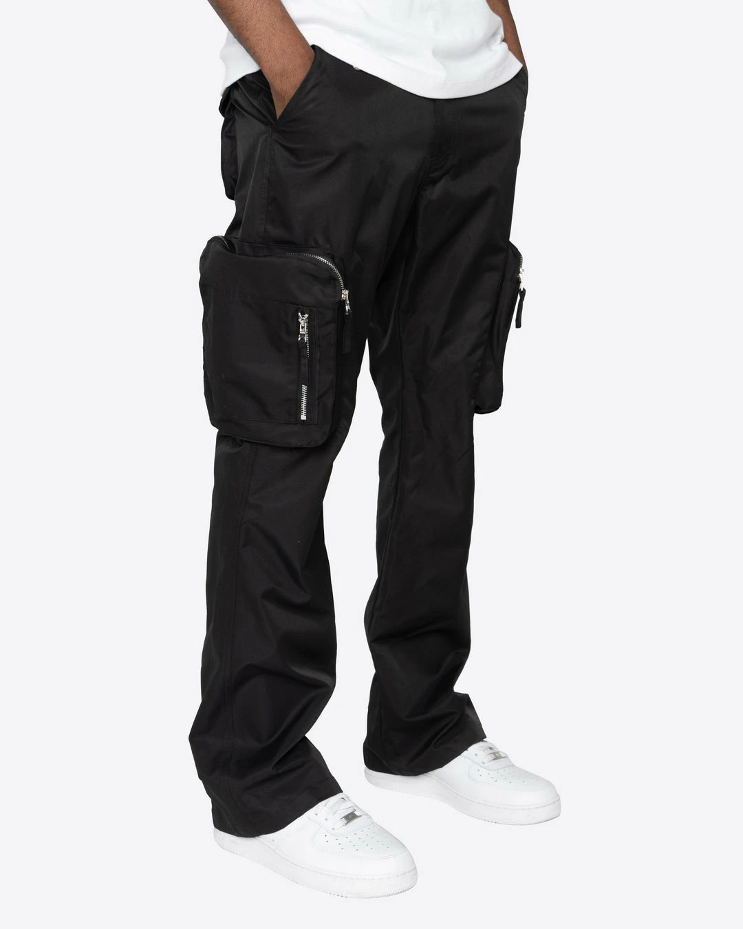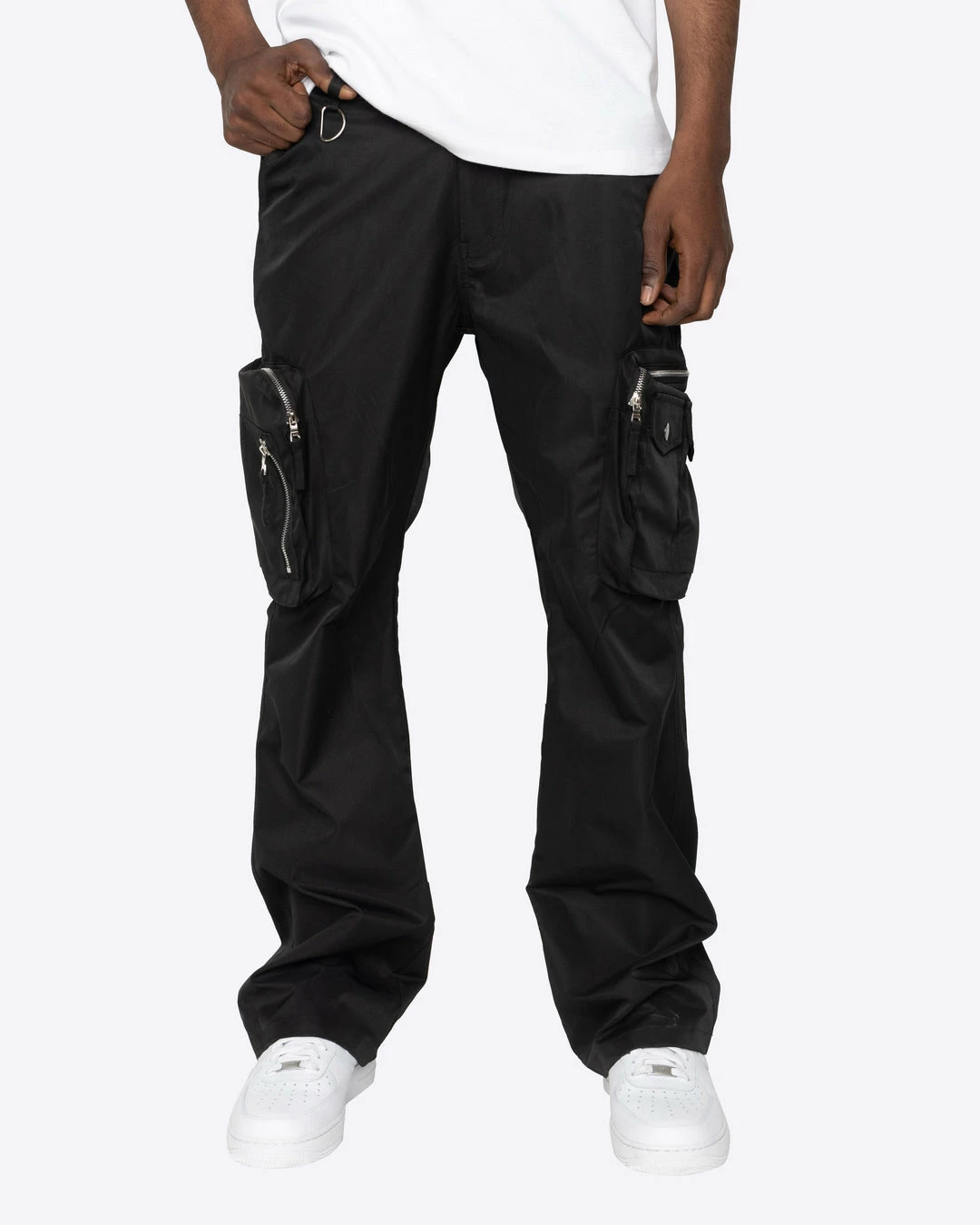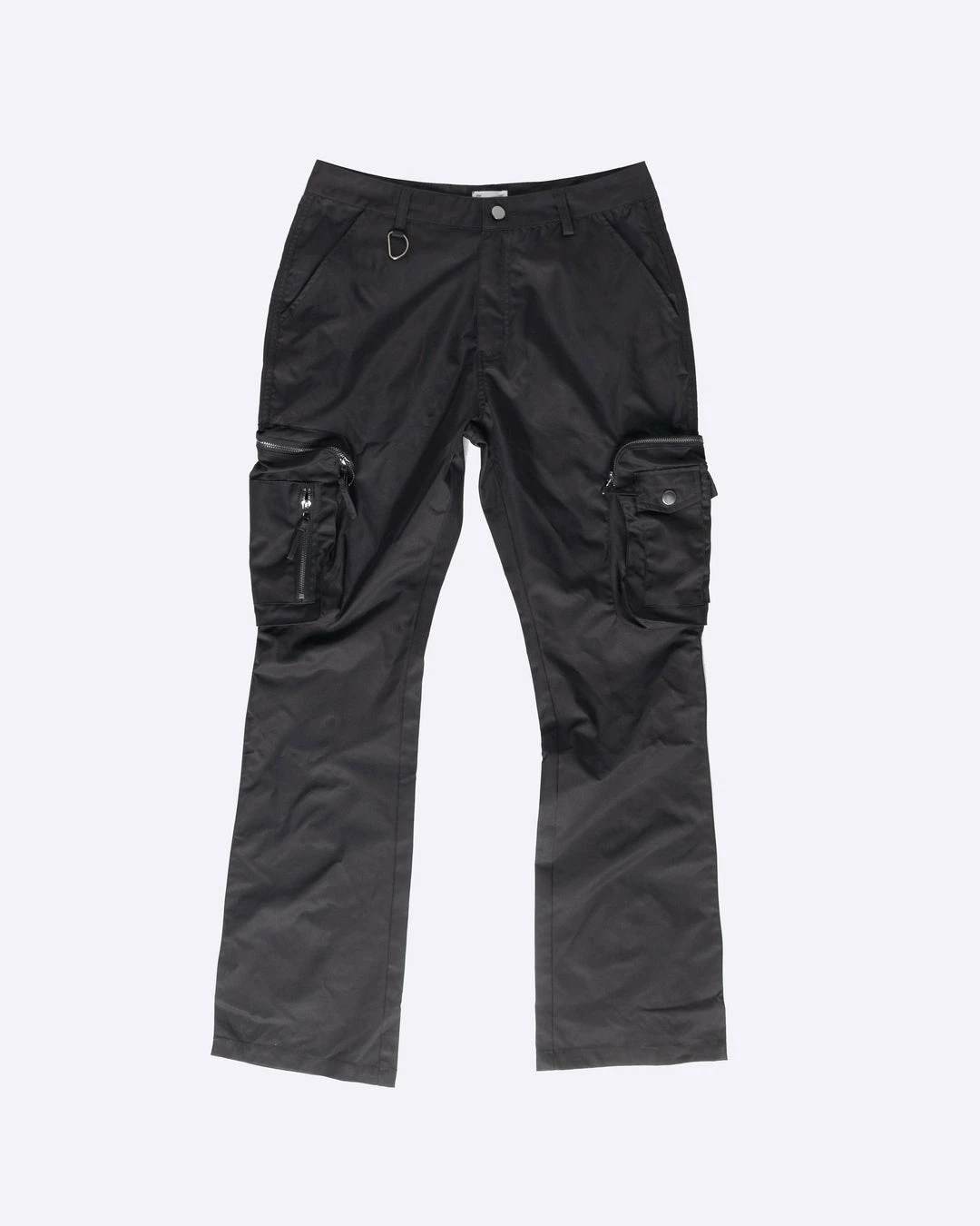 The Osaka Cargos is our new take on the classic cargo pants. Features a flare fit with oversized zipper cargo pockets and a d-ring at the waist for your wallet or keys. Made in stretch nylon for a clean and crisp look.