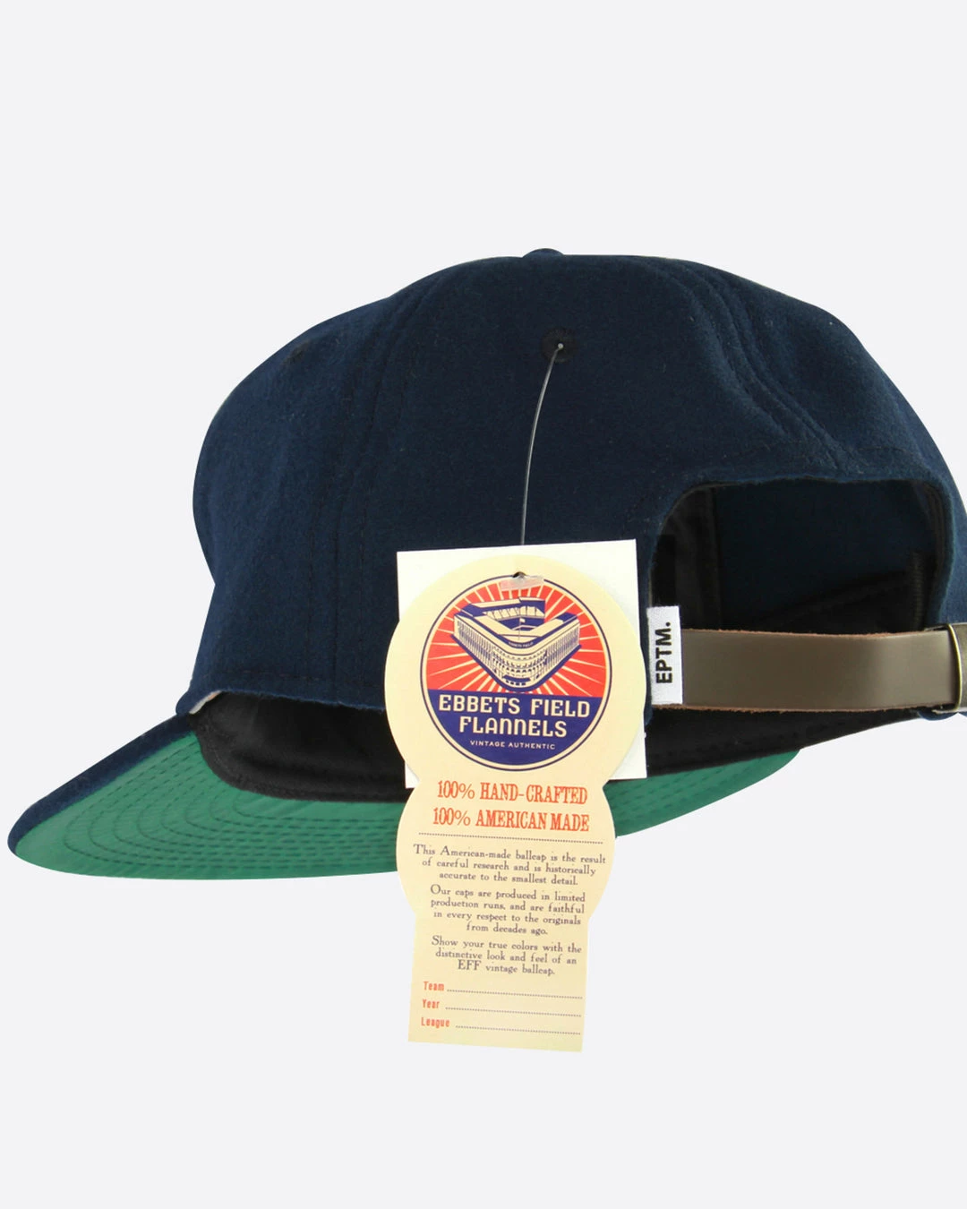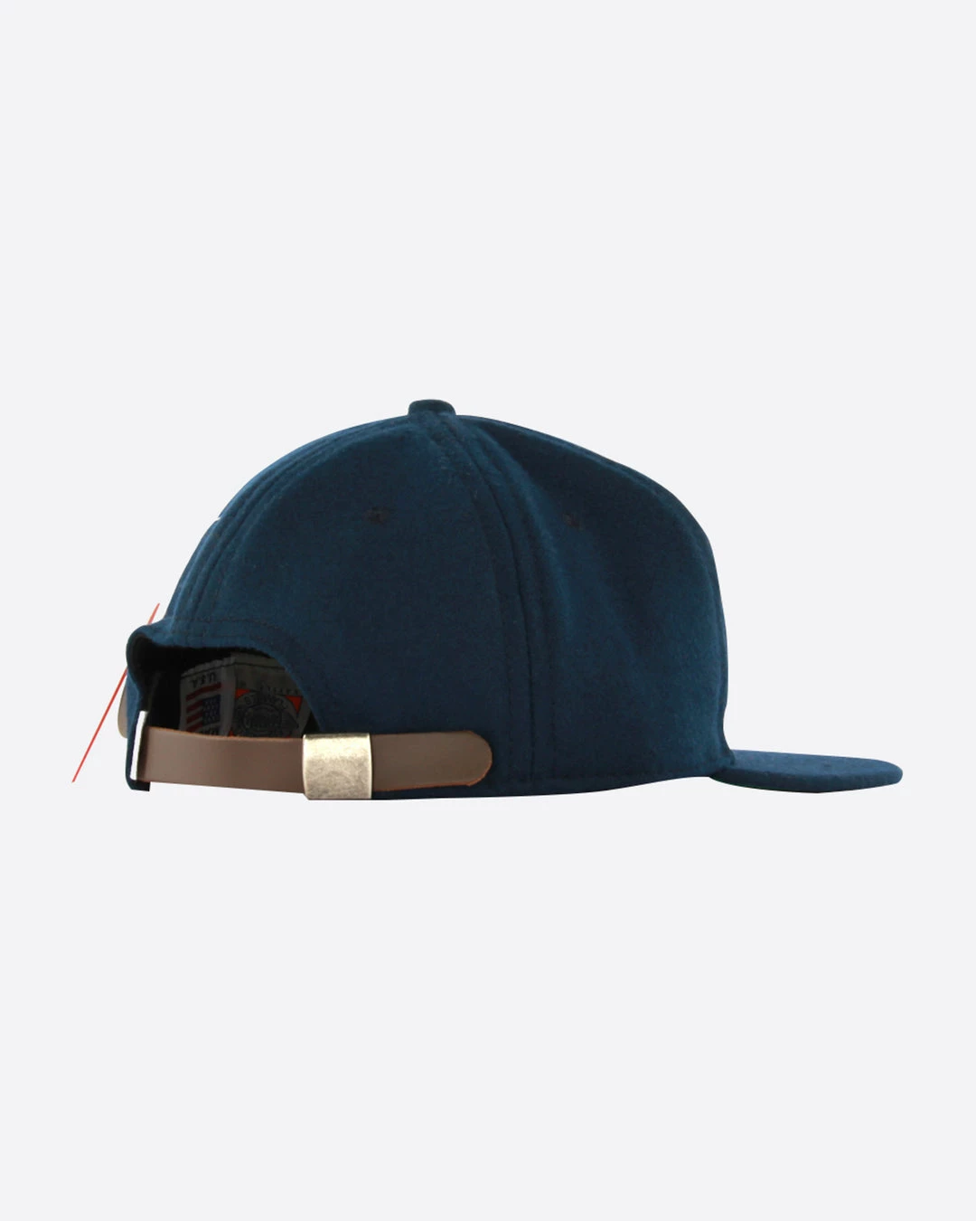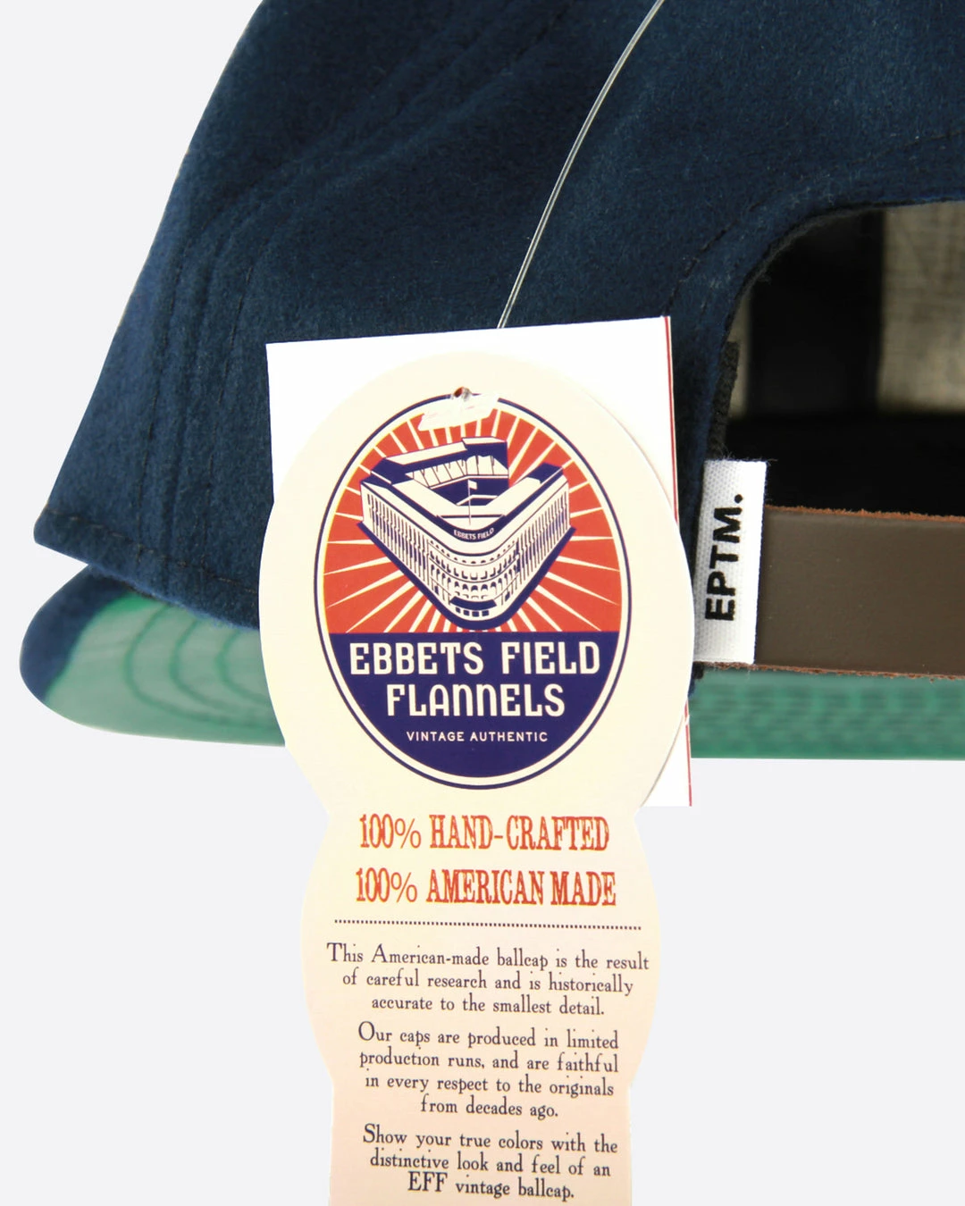 Handmade Ebbets Field Vintage Hat Featuring Patch Detail & Leather Strap for closure.