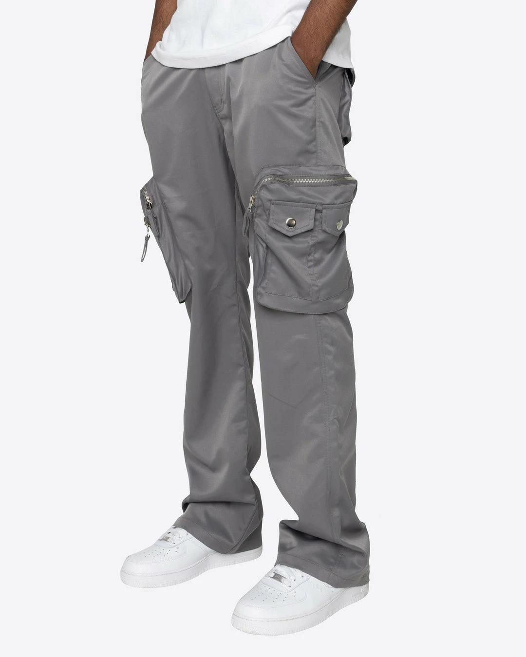 The Osaka Cargos is our new take on the classic cargo pants. Features a flare fit with oversized zipper cargo pockets and a d-ring at the waist for your wallet or keys. Made in stretch nylon for a clean and crisp look.