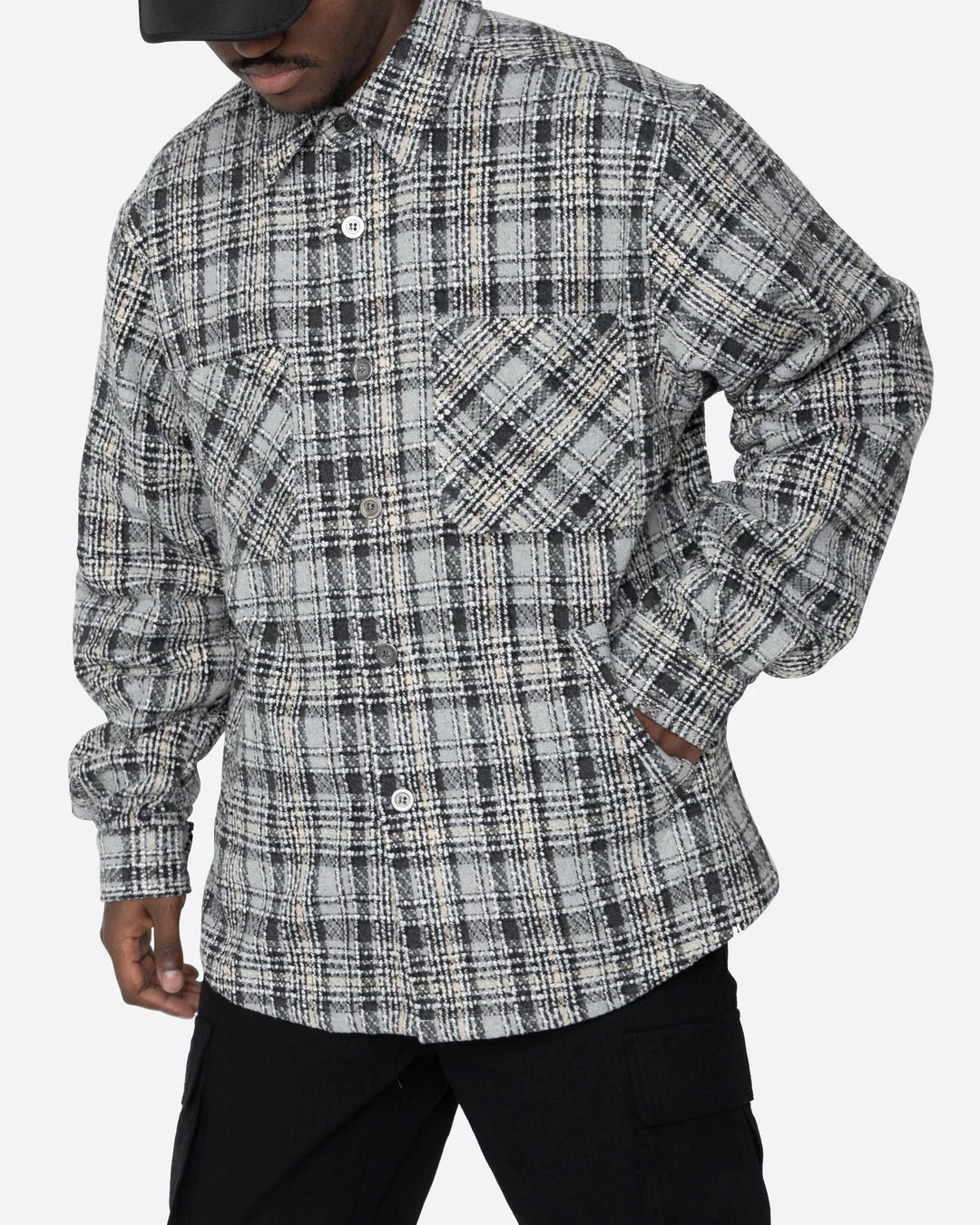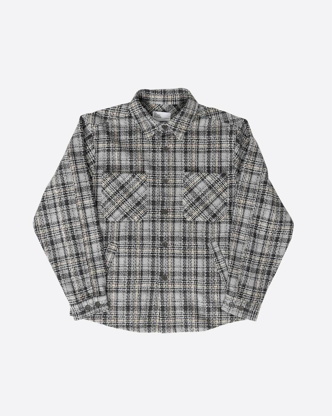 Our signature, heavy weight slit flannel. This slightly oversized flannel is perfect for wearing solo or layering over your favorite hoodie when it gets chilly. Featuring two chest pockets, two welt waist pockets, and side seam slit details.