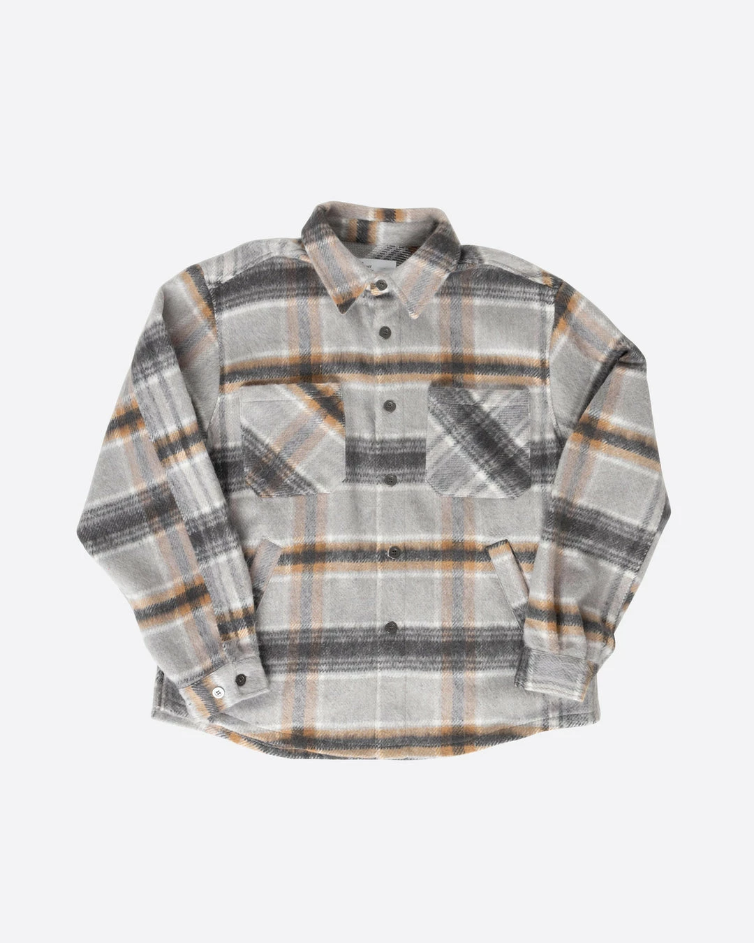 Our signature, heavy weight slit flannel. This slightly oversized flannel is perfect for wearing solo or layering over your favorite hoodie when it gets chilly. Featuring two chest pockets, two welt waist pockets, and side seam slit details.