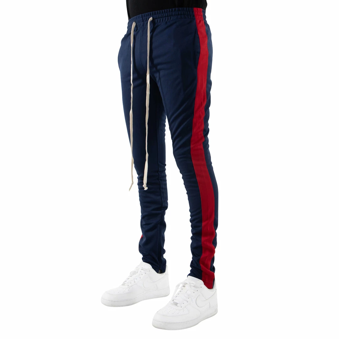 Invisible zippers at inner ankles.