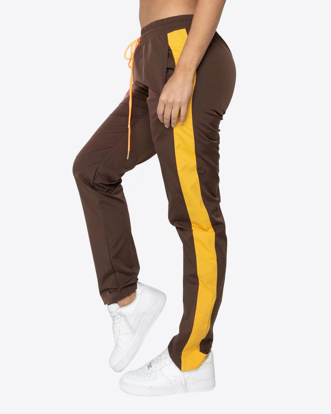 EPTM. EPTM WOMEN NYLON BASIC TRACK PANTS-BROWN/MUSTARD