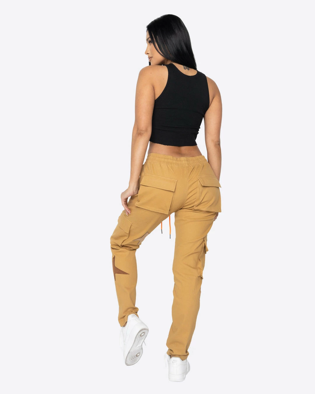 EPTM. EPTM WOMEN STARDOM CARGO PANTS-KHAKI BOTTOMS