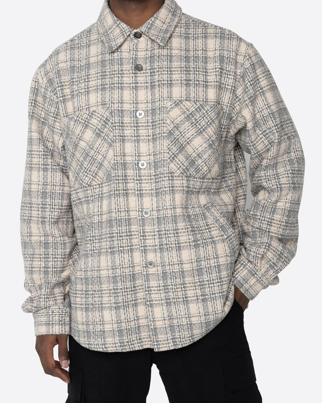 Our signature, heavy weight slit flannel. This slightly oversized flannel is perfect for wearing solo or layering over your favorite hoodie when it gets chilly. Featuring two chest pockets, two welt waist pockets, and side seam slit details.