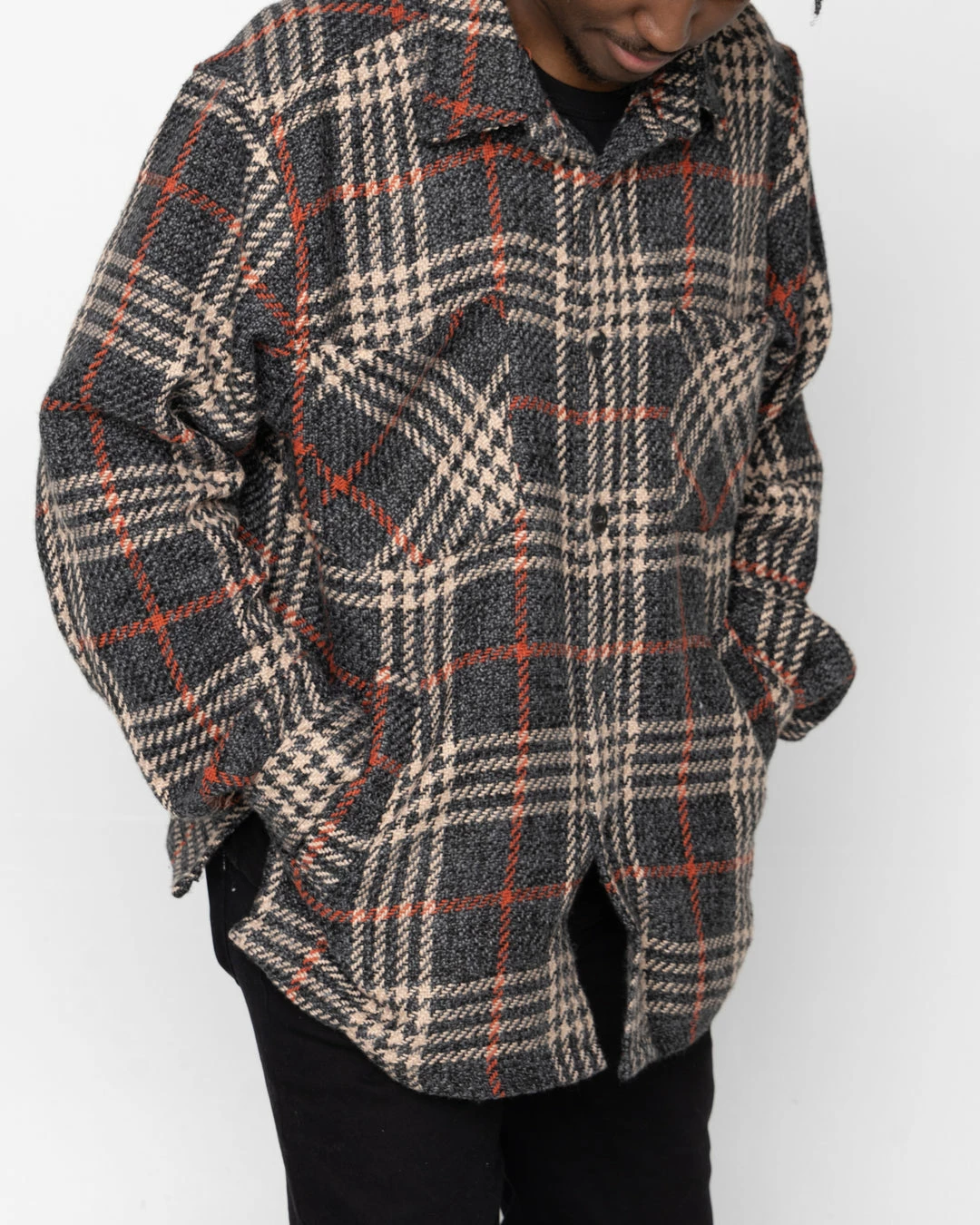 EPTM. SHIRTS EPTM SLIT FLANNEL SHIRT-PLAID GREY